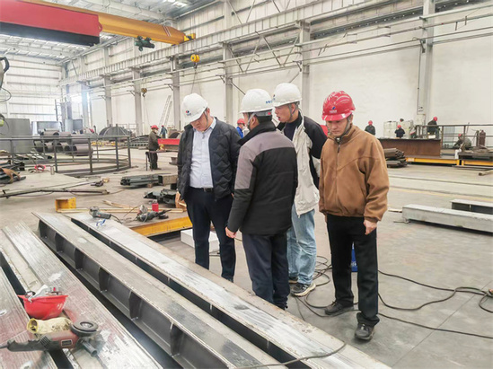 本网眉山消息(余乾飞 宋朋飞报道)3月12日,公司党委书记、执行董事周建平在眉山分公司制造基地督导环北部湾闸门及门槽生产进度。 周建平深入生产车间,重点查看闸门焊接工艺流水线及门槽精密加工设备运行情况,并听取现场汇报。协调会上,周建平提出四点要求:一是锚定节点目标,加强设备调度与人员轮班管理,确保节点前完成首批产品交付;二是强化全链条质控,严格落实三级检验制度,对关键指标实施动态监测;三是筑牢安全生产防线,建立安全风险隐患台账,确保整改闭环管理;四是统筹资源优配置,聚力攻坚保目标,优先保障基地钢材采购需求,设备物资部门建立跟踪机制,确保生产进度与问题解决。 眉山分公司负责人表示,将严格落实公司要求,通过“倒排工期、挂图作战”的方式加速生产,力争超额完成目标。(责任编辑 蒲玉凤) 公司党委书记、执行董事周建平在制造现场检查 | |