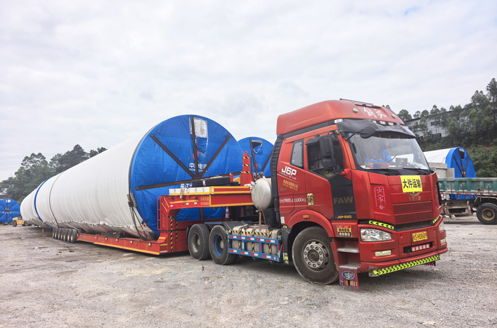 据了解,该项目建设地点在广西河池市天峨县,夹江水工共提供8套300多吨塔筒产品,每套分5节运输。